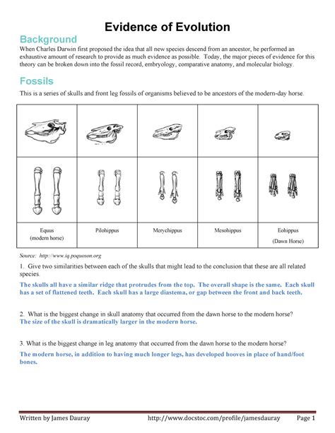Understanding James Dauray's Evidence of Evolution Worksheet Answers
